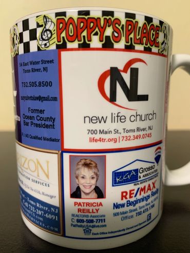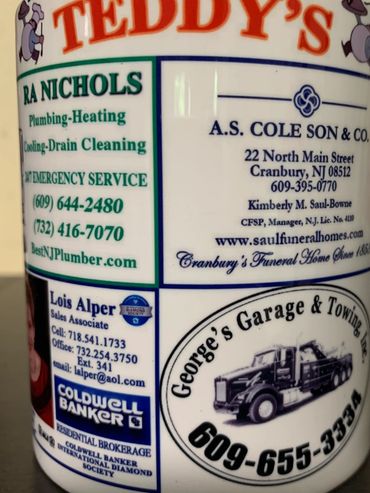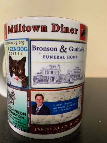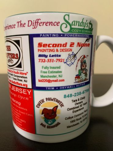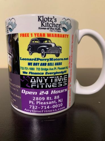 We work with local diners and restaurants and provide to them COFFEE MUGS, that feature 8-ads of local businesses. If you are interested in our MUG PROGRAM, please give us a call for an update on what restaurants we are working on, or upcoming restaurants that we will be renewing. Your COMPANY AD, would be on every COFFEE MUG used in the restaurant for 1-year. The Ads on our Coffee Mugs are EXCLUSIVE.